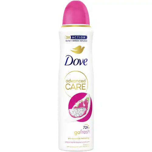 Dove Deospray Advanced Care Go Fresh Dragon Fruit & Coconut is de perfecte keuze voor wie houdt van een frisse, tropische geur en een comfortabel huidgevoel. Deze deodorant combineert een levendige fruitige frisheid met een zachte, romige ondertoon, waardoor je de hele dag door een verzorgd en zelfverzekerd gevoel behoudt.