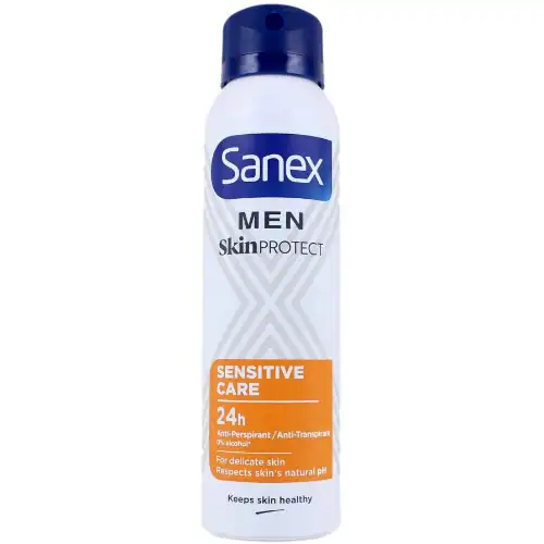 Sanex Men Deospray Sensitive Care is speciaal ontwikkeld voor mannen met een gevoelige huid. De milde, alcoholvrije formule beschermt 24 uur lang tegen nare geurtjes zonder de huid te irriteren. Dankzij de huidvriendelijke Sanex Dermo Active Technology blijft de natuurlijke huidbalans behouden en voelt de huid de hele dag fris en comfortabel aan.